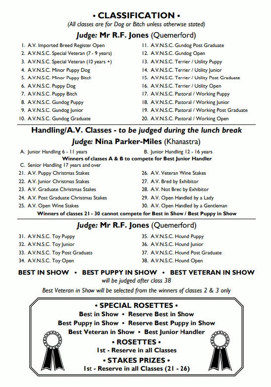 Members Limited Show Saturday 20 December 2025 - Order of Judging